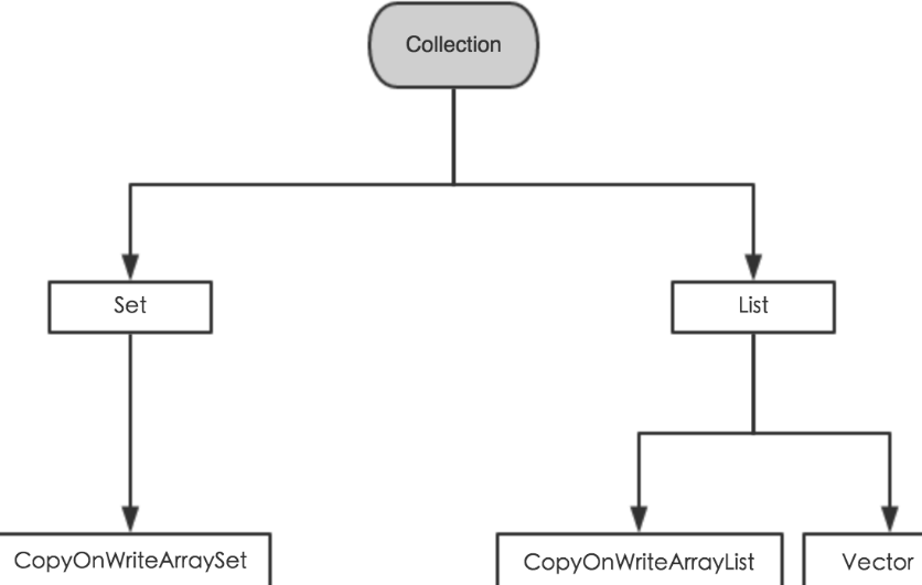 Collection部分主要是运用的CopyOnWrite机制,即写时复制机制。从字面上就能理解什么意思,就是当我们往一个容器里添加元素的时候,先对这个容器进行一次复制,对副本进行写操作。写操作结束后,将原容器的引用指向新副本容器,就完成了写的刷新。